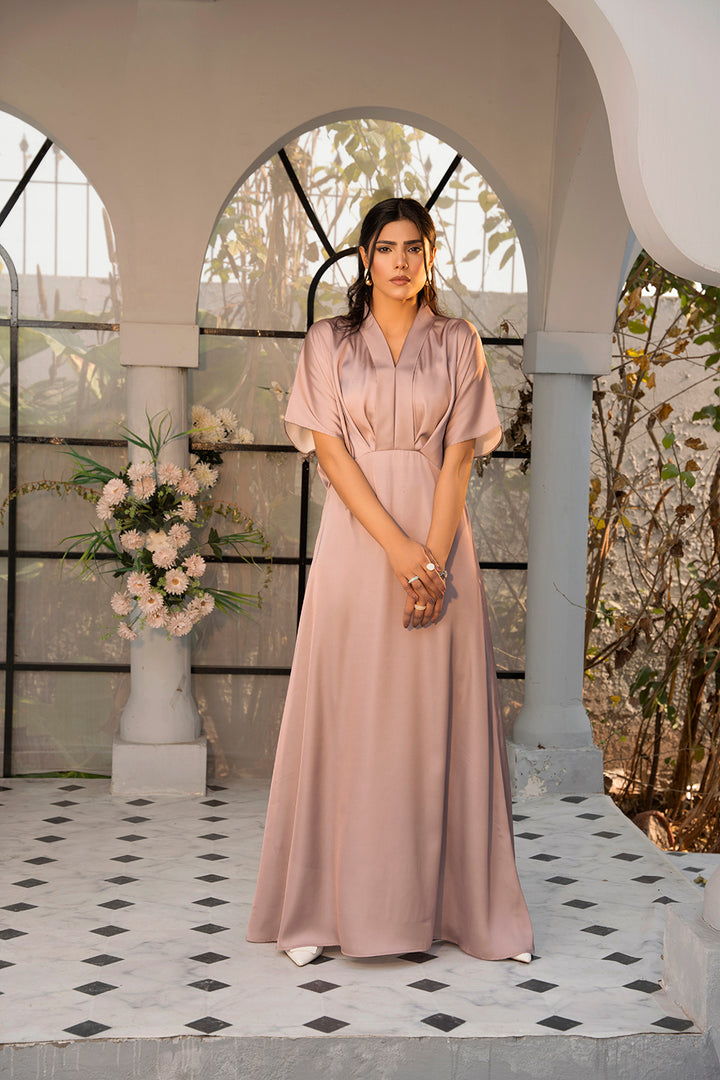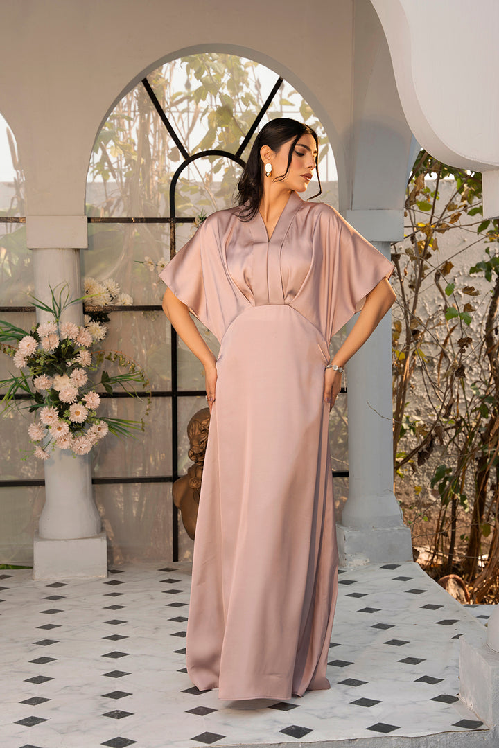 • An exquisite peach pink maxi dress crafted with the artful drape technique for timeless elegance